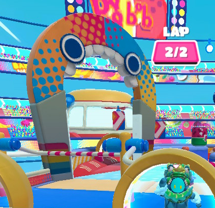 Blastlantis, this one is special however, as it's the only one to contain the Fall Guys Logo. This could be because the arena in Blastlantis is a gauntlet fallen into ruins. This is why it resembles the Finish Line found in Underwater-themed levels.