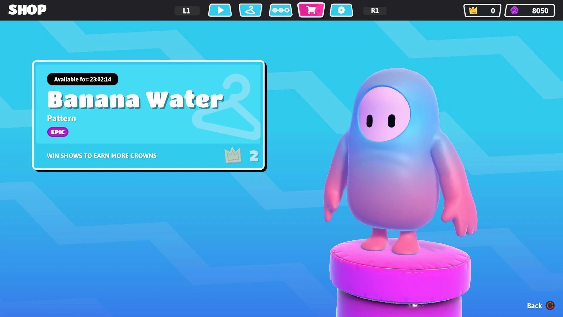 The Banana Water Pattern is a pattern in Fall Guys. It shares its name with the Banana Water Costume and the Banana Water Colour.