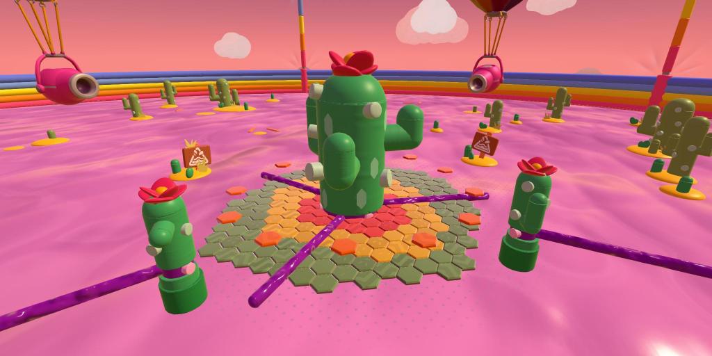 A giant cactus is found in the middle of the arena. At its center is a triple Rotating Beam made of purple slime that moves in the counter-clockwise direction. Players must jump over it and three other Rotating Beams from outside cactuses in order to survive.