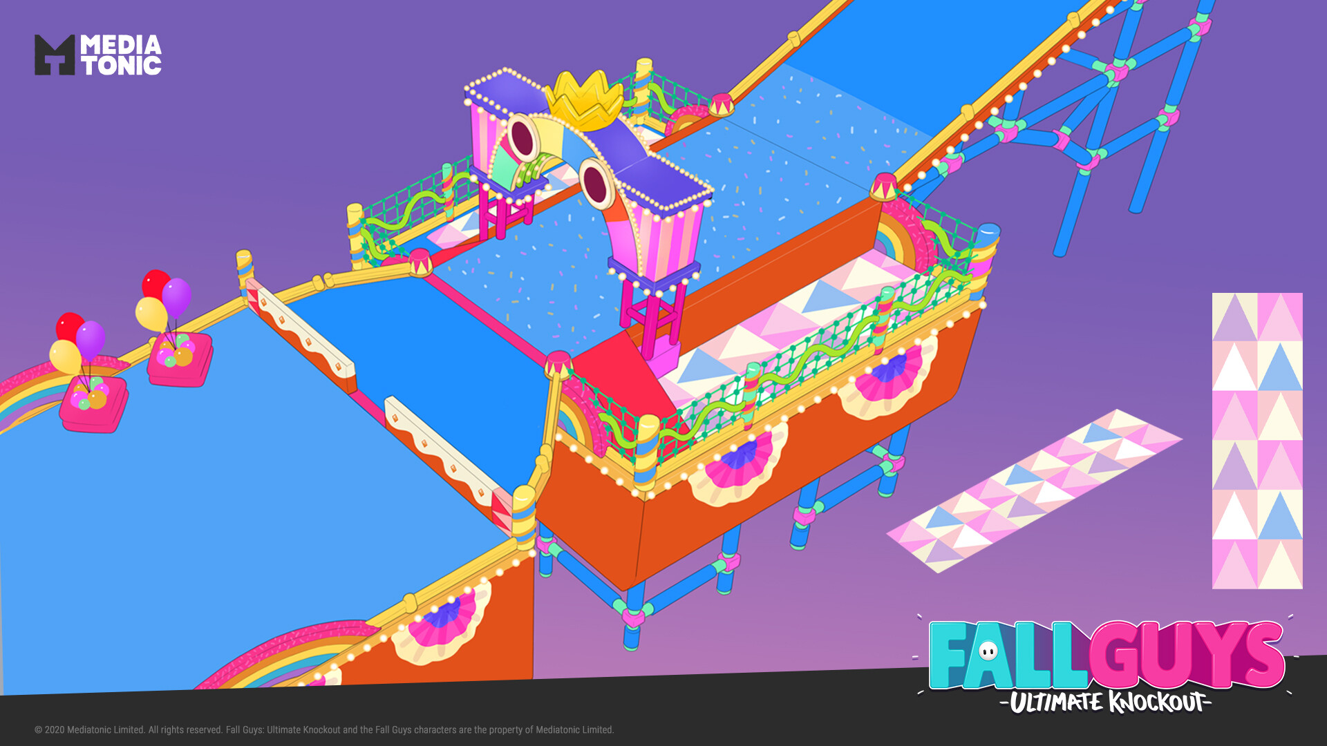 Hit Parade is one of the levels in Fall Guys. It is a COURSE level and was first introduced in the beta version. It is one of three gauntlets available in Season 1 (Legacy).