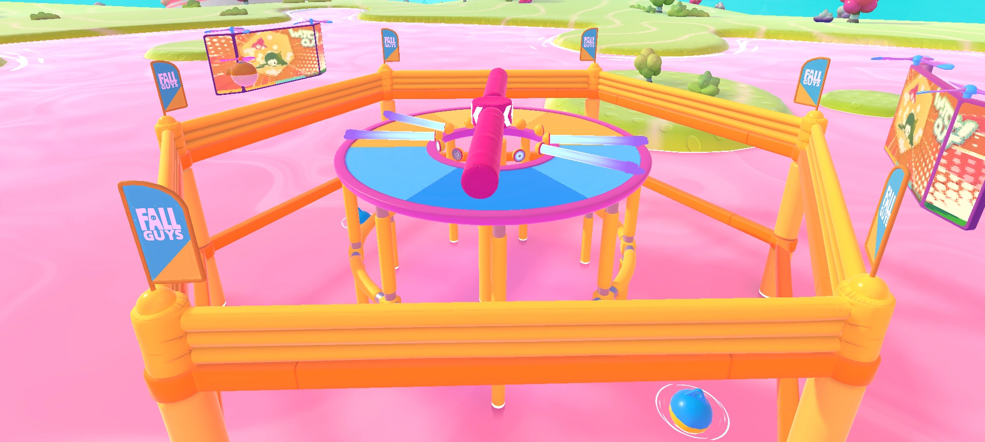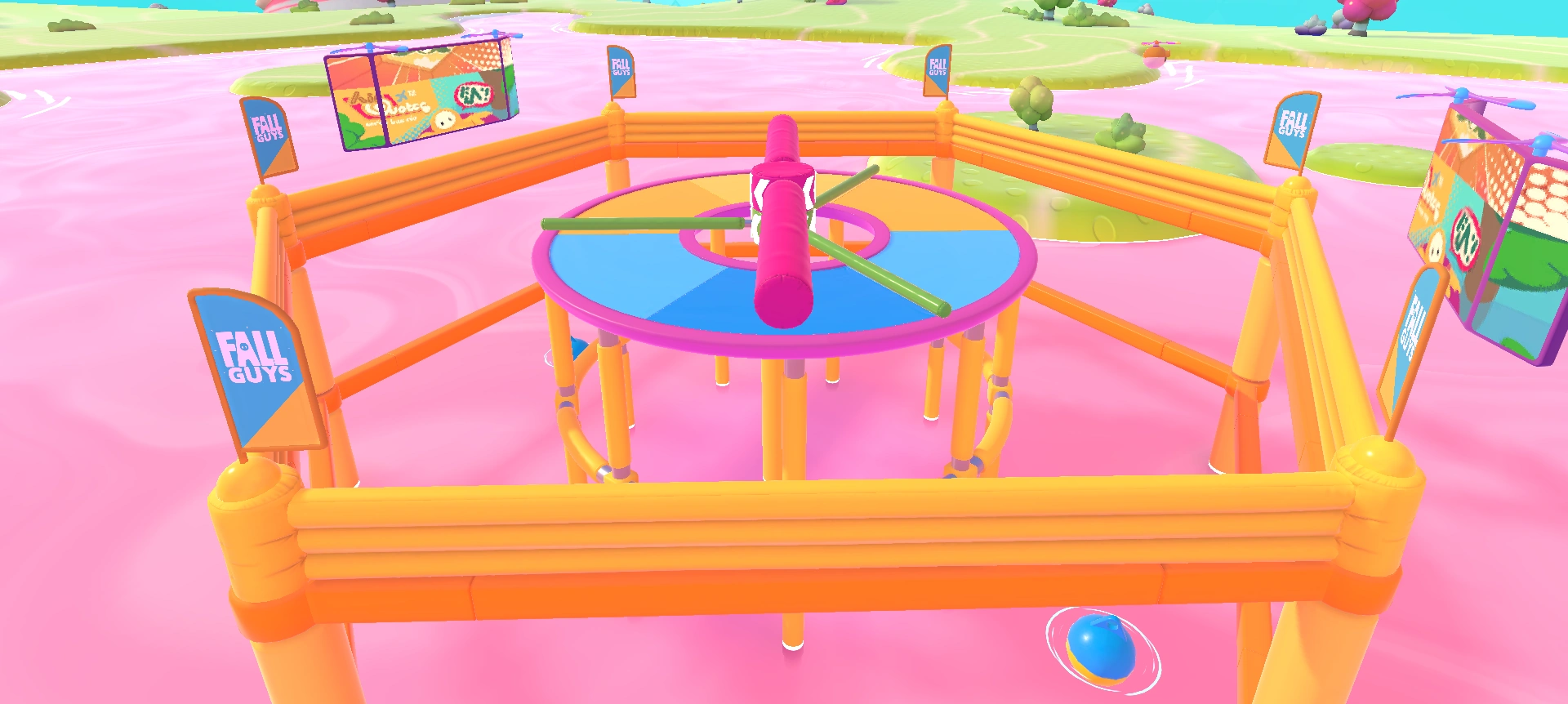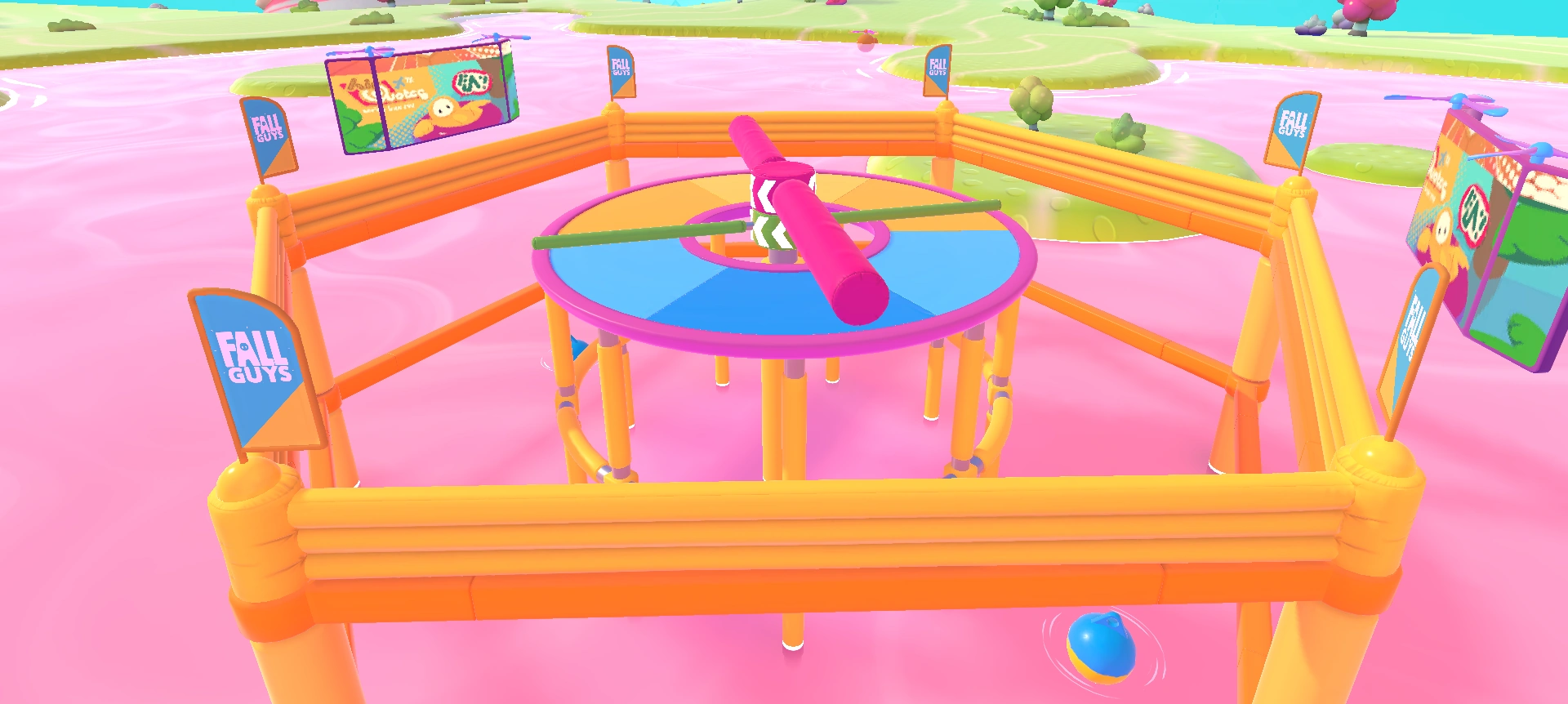 Jump Club is a survival round that consists of a circular platform with the center cut out. In the center are two rotating beams with the same center and are right on top of each other. The beam on top of the other spins slow and is very thick, and it is higher than the player. The bottom one is thinner, being low enough to jump over but high enough to knock over a player. It starts out spinning slowly, but as the round progresses, it gradually speeds up.