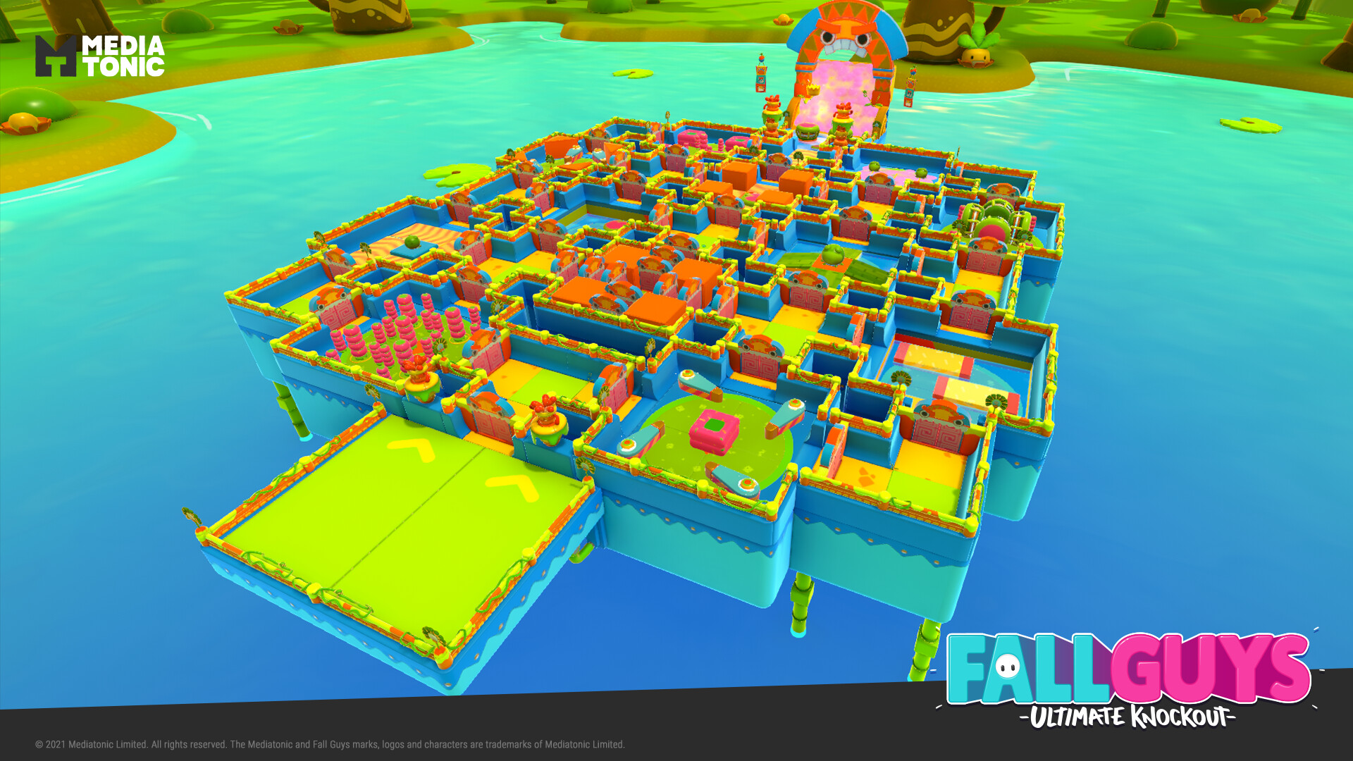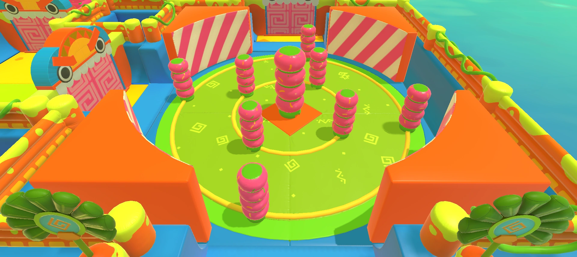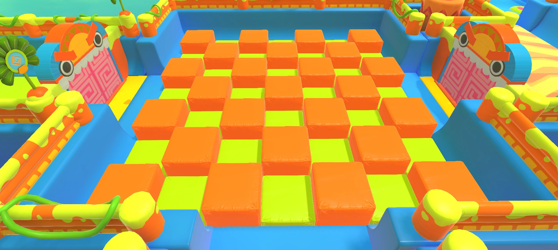 A square room with no obstacles and a single door that leads to the rest of the level. All the Fall Guys still present in the match will spawn in a semicircle in front of the door.