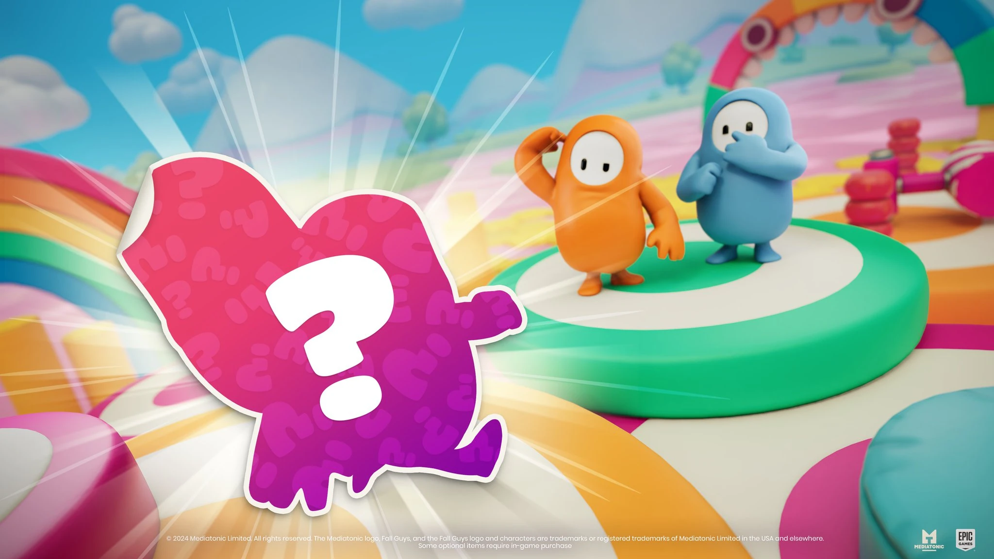 Two Fall Guys piggybacking in key art for the Fall Forever Update