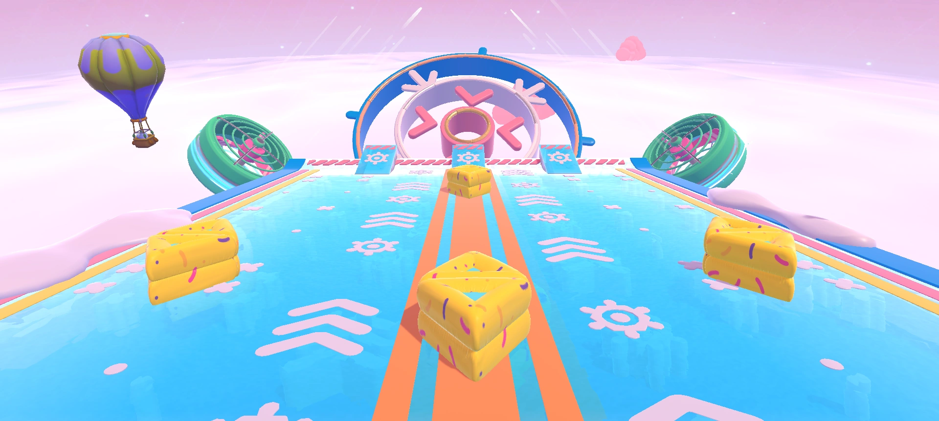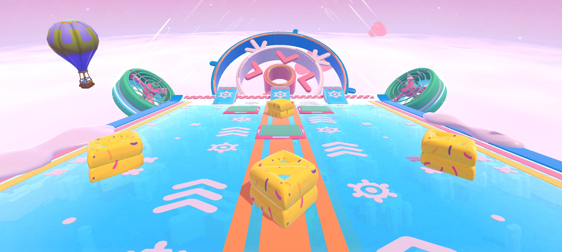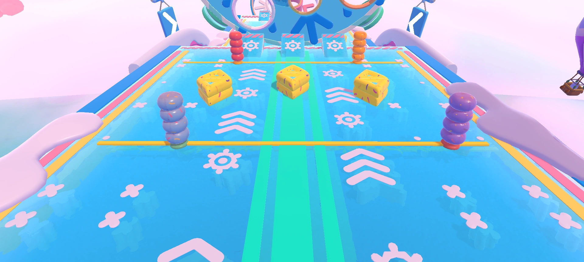- If you're going for the 5-point gold ring strategy, the donut bumpers shouldn't prove to be a hindrance, as slide-diving along the colored lines along the edges, then making a beeline for the middle ring means they cannot bump into the player.