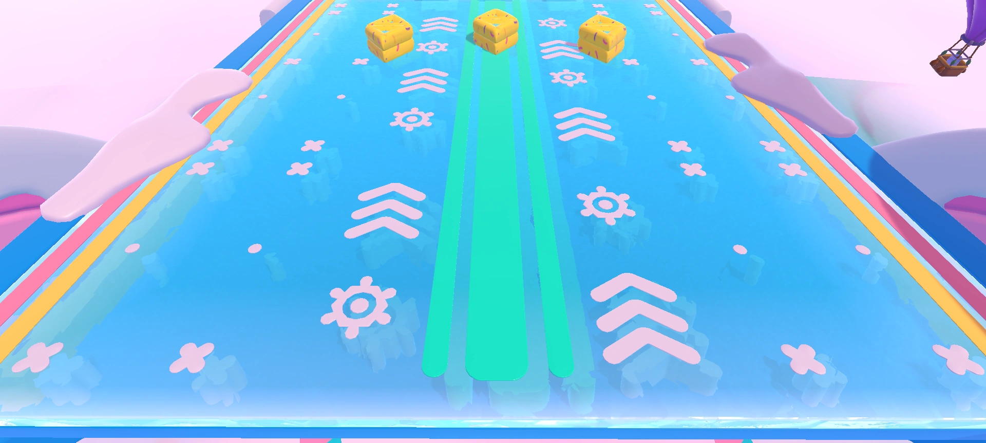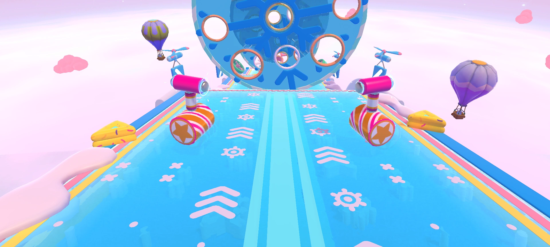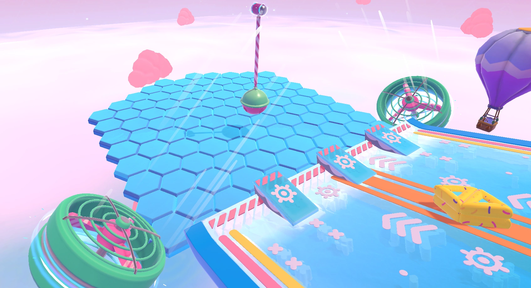 - If you're going for the 5-point gold ring strategy, the donut bumpers shouldn't prove to be a hindrance, as slide-diving along the colored lines along the edges, then making a beeline for the middle ring means they cannot bump into the player.