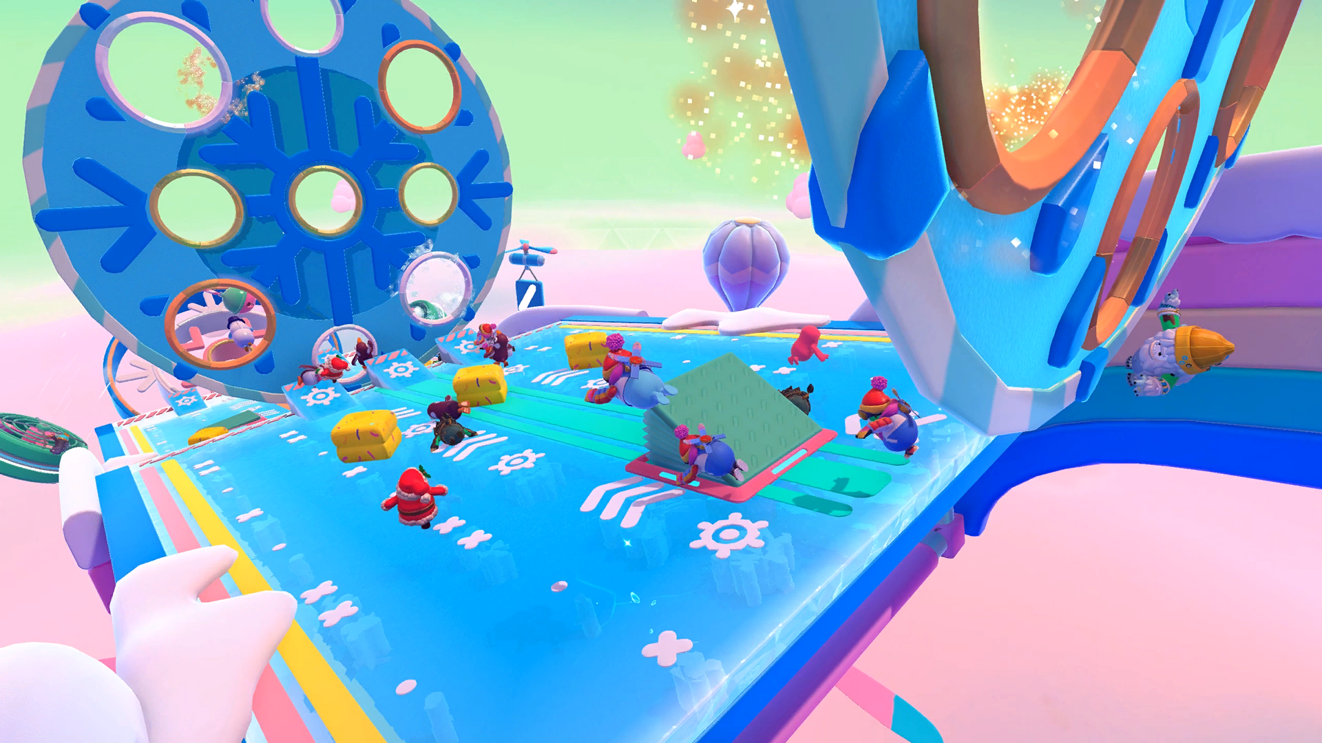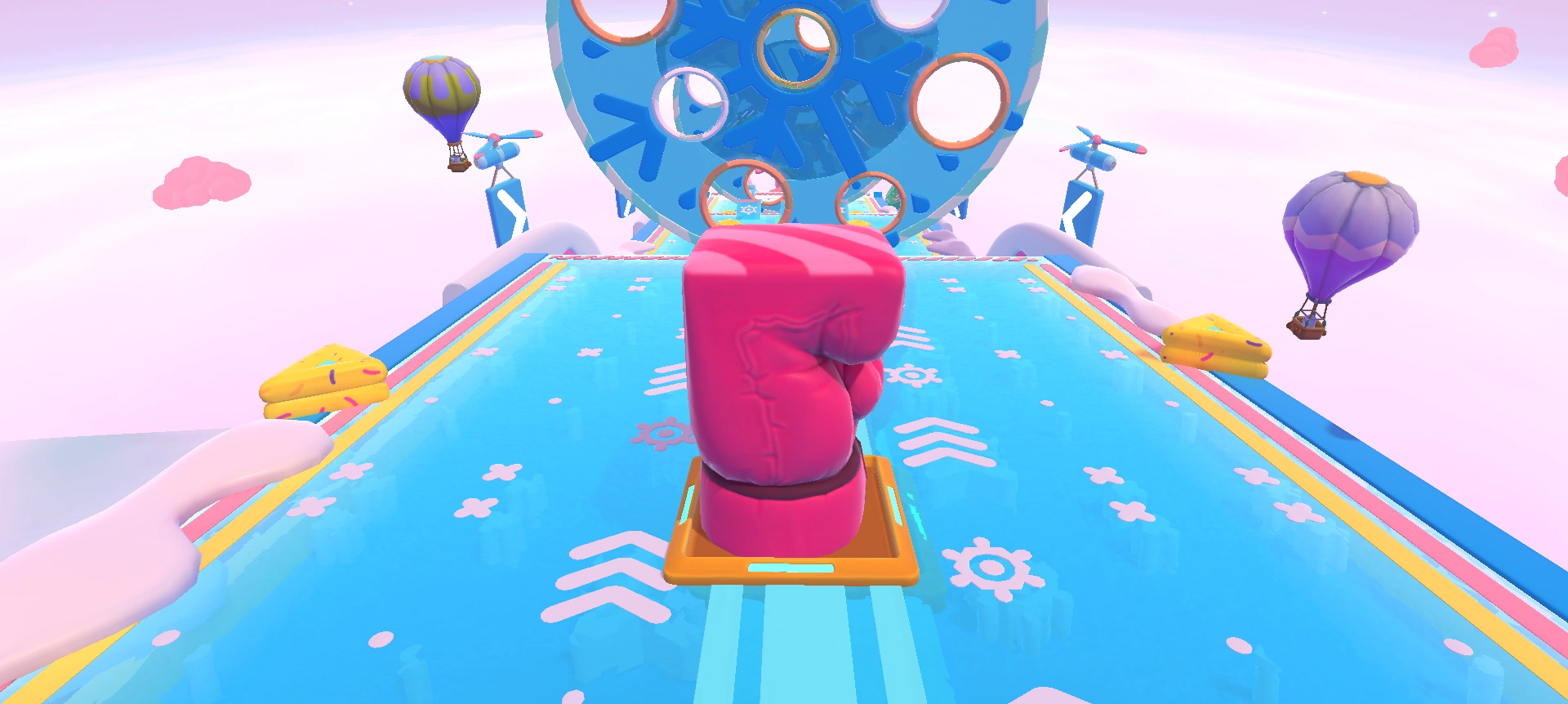 - For the Ice tiles variant, break the tiles in the middle of the floor if you happen to get there first (or jump into the hole if other players have opened the path for you). Afterwards, it could pay off to try and preserve the tiles as best as possible to ensure a path to the golden ring on your next attempts.